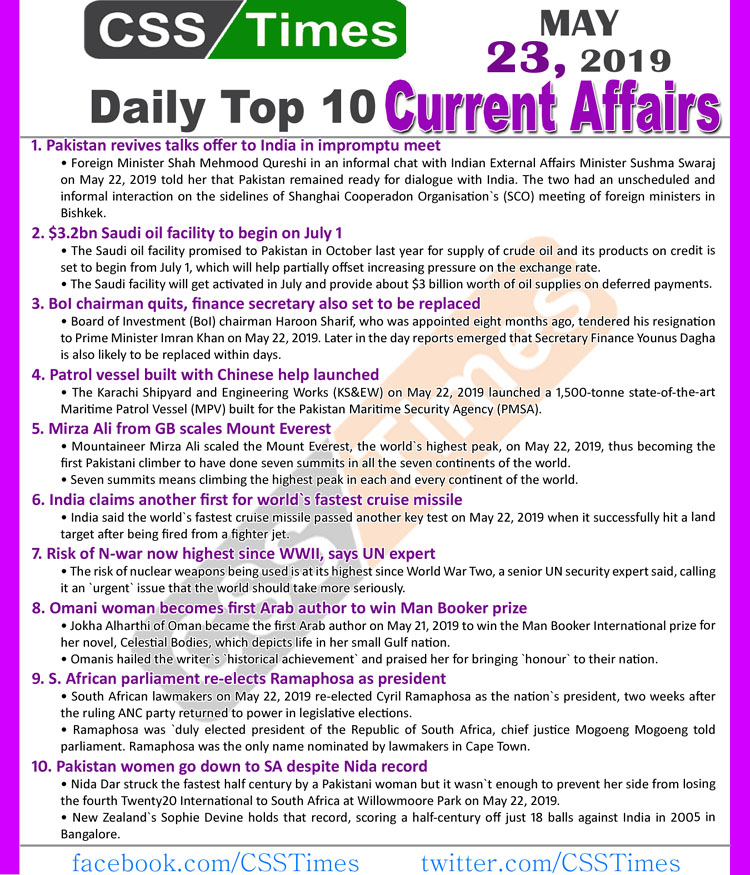 WELCOME TO CSS TIMES DAY BY DAY CURRENT AFFAIRS, YOUR BEST SOURCE FOR UP-TO-DATE AND DAILY TOP CURRENT AFFAIRS 2018 FOR PREPARATION OF CSS, PMS, BANKING, NTS, RAILWAYS AND ALL COMPETITIVE EXAMS. “DAY TO DAY CURRENT AFFAIRS” BASICALLY IS TOP 10 NEWS SUMMARY ON CURRENT HAPPENINGS OF NATIONAL AND INTERNATIONAL IMPORTANCE FOR ALL EXAMINATIONS